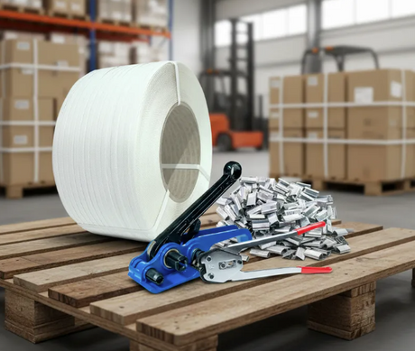 Zuncho Plástico PP 1/2" 12mm*0,8mm*1.500m + Kit Enzunchador