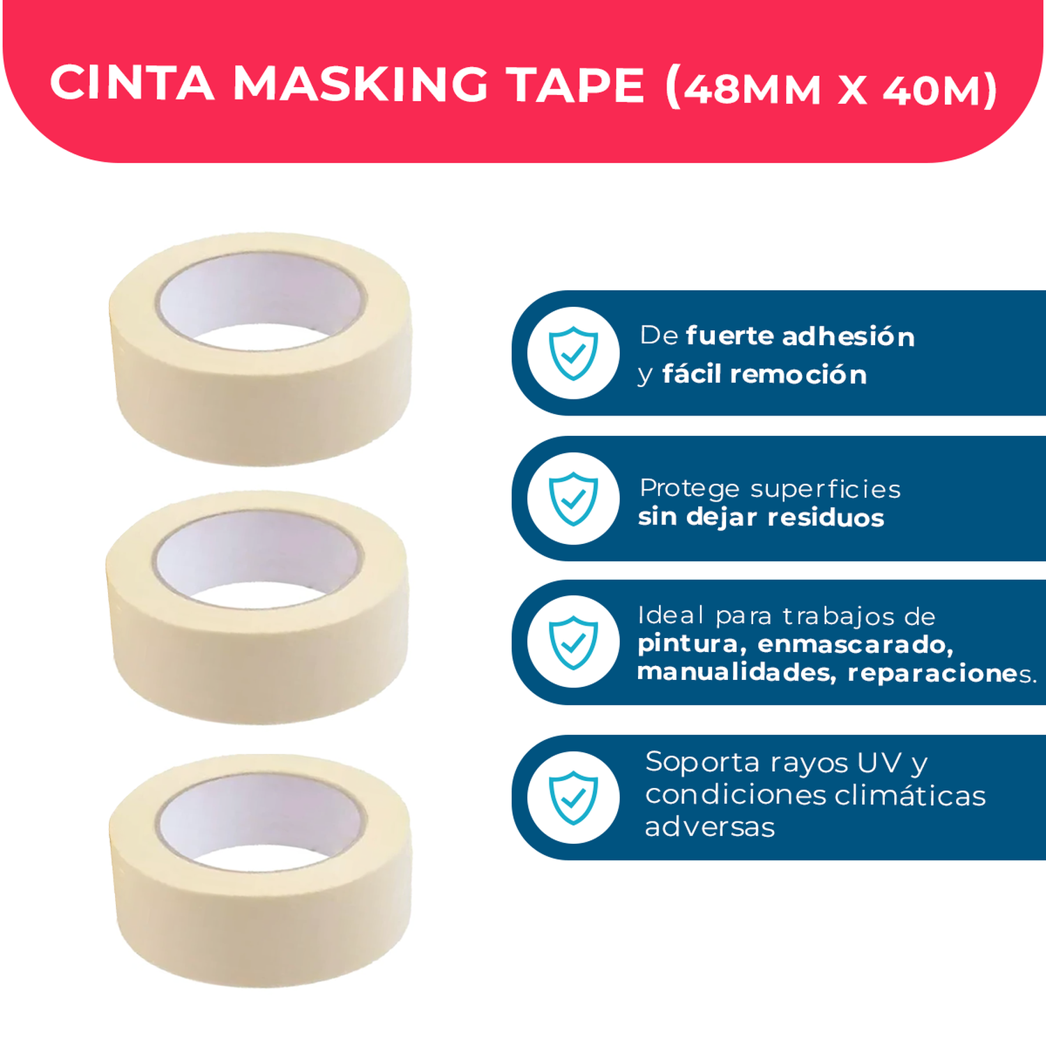 La Cinta Masking Tape, también conocida como Cinta para Enmascarar, es un producto versátil diseñado para trabajos de pintura, embalaje ligero y protección de superficies. Su adhesivo de calidad permite una fácil aplicación y remoción sin dejar residuos, ideal para múltiples usos tanto en el hogar como en entornos industriales.