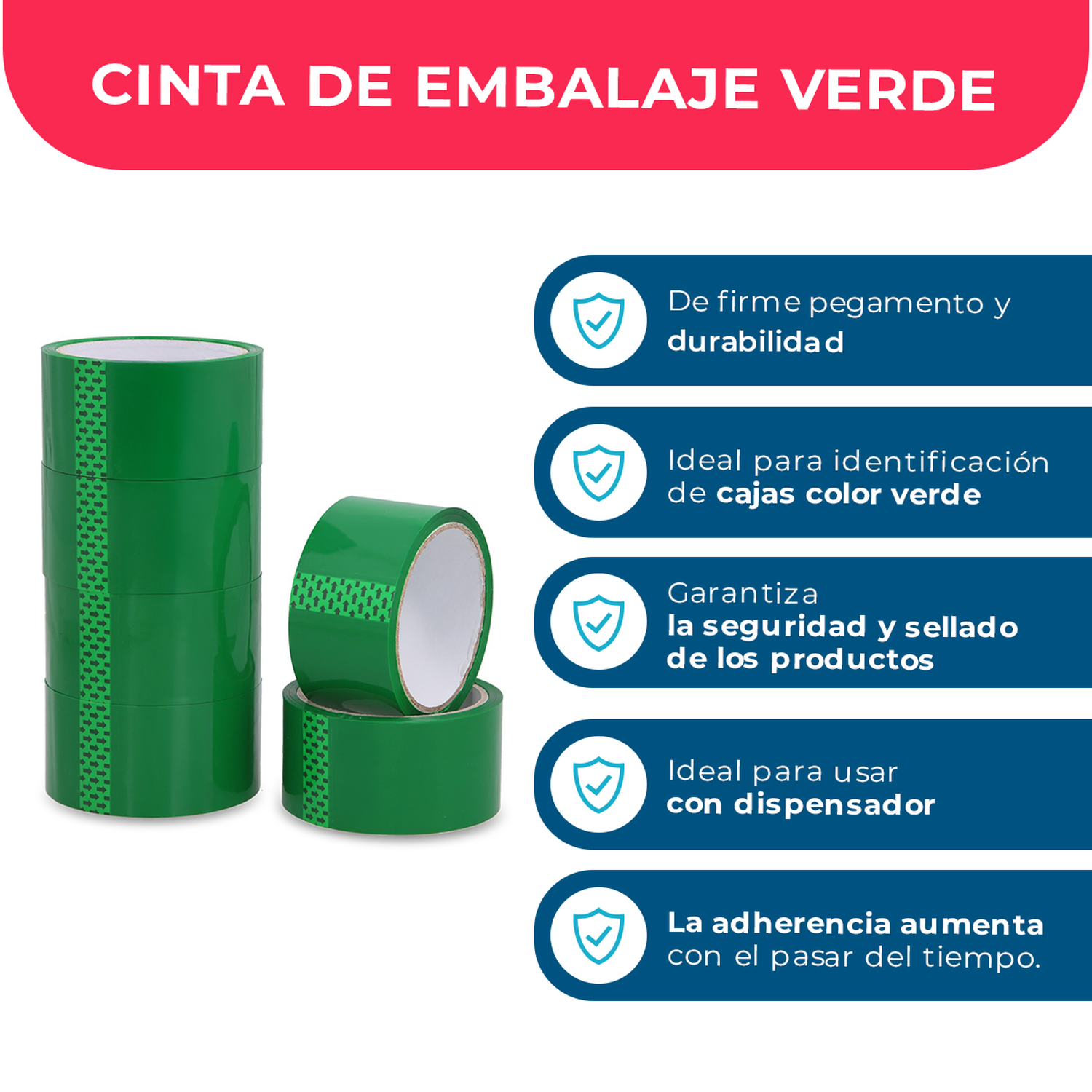 La Cinta Adhesiva Verde es ideal para organizar, señalizar y embalar, ofreciendo una solución práctica y resistente para múltiples aplicaciones. Su tonalidad distintiva permite una rápida identificación y aporta mayor visibilidad en diferentes entornos, ya sea en oficinas, bodegas, mudanzas o trabajos manuales.